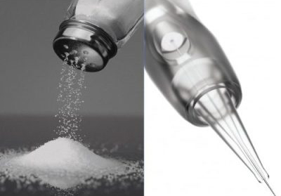 Salt and Saline is as a solution that, along with the correct removal method is a simple and safe method of tattoo removal. It is commonly used on semi-permanent makeup procedures that are no longer desired. The main ingredient used Sodium Chloride (Salt). When the sterile salt solution is implanted into the unwanted tattoo ink via specialised tattooing techniques, the osmotic process is induced which successfully attracts the fragmented ink particles, this drawing them out of the skin.