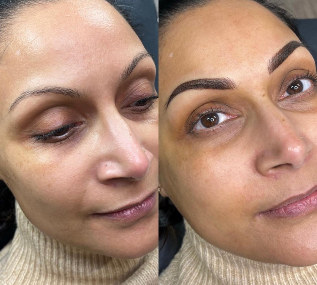 I always try and work with your natural eyebrow shape and hair as much as possible which means a more natural result and less maintenance for you to keep on top of. You will have to occasionally pluck/wax around the brow shape (after the healing period) but this is very easy to do now you have your new defined brow shape to follow.